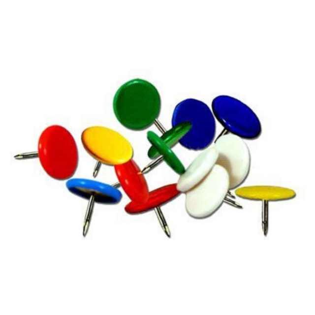 Chinches de colores de la marca Flaming. Utilizado para hacer manualidades, o para trabajos escolares o de oficina. Es acero inoxidable.
