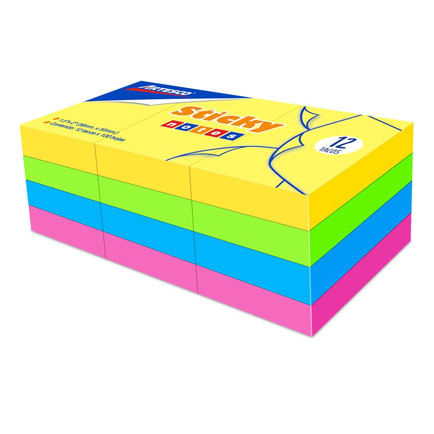 NOTAS ADHES 1.5X2 (38MMX50MM) 12 TCOS X 100 HOJAS COLORES NEON ARTESCO