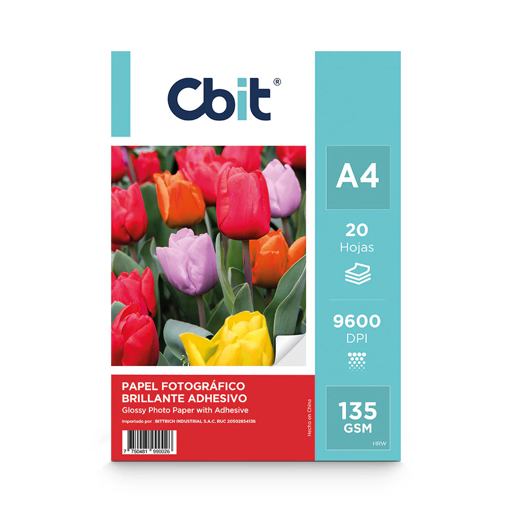 PAPEL FOTO GLOSSY ADHESIVO A4- 135 GR X 20 UNID CBIT