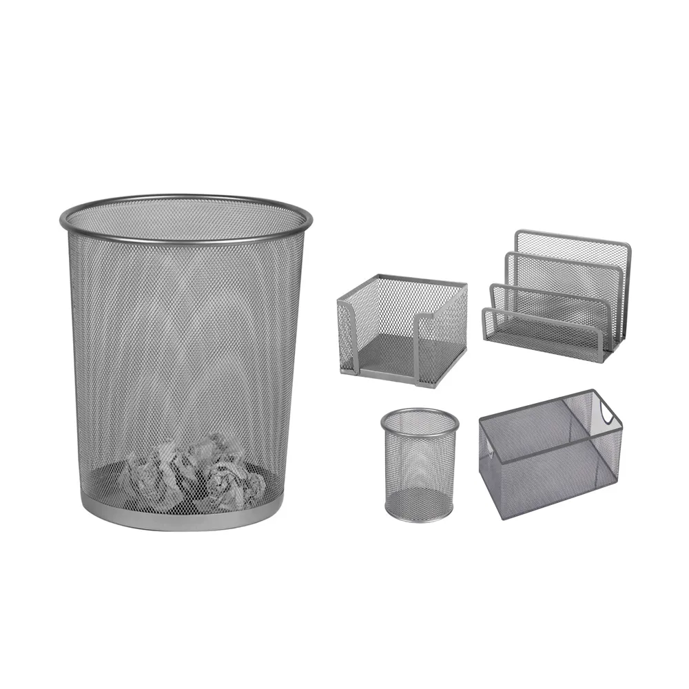 SET ORGANIZADOR DE METAL X 5 PIEZAS DE MALLA METÁLICA PLATEADO (METAL MESH)